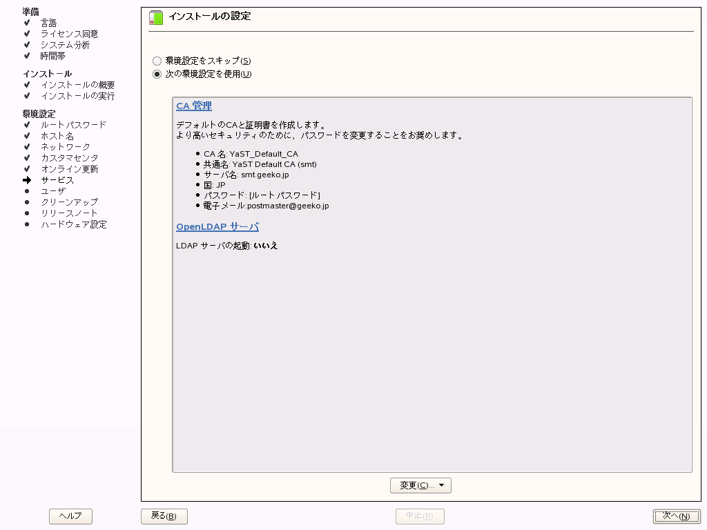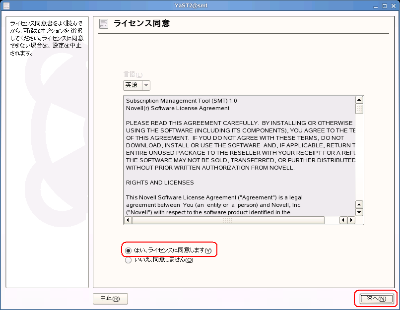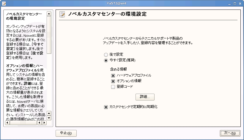 これは、YaSTの「SMT環境設定」を開いて確認、調整することが出来ます。